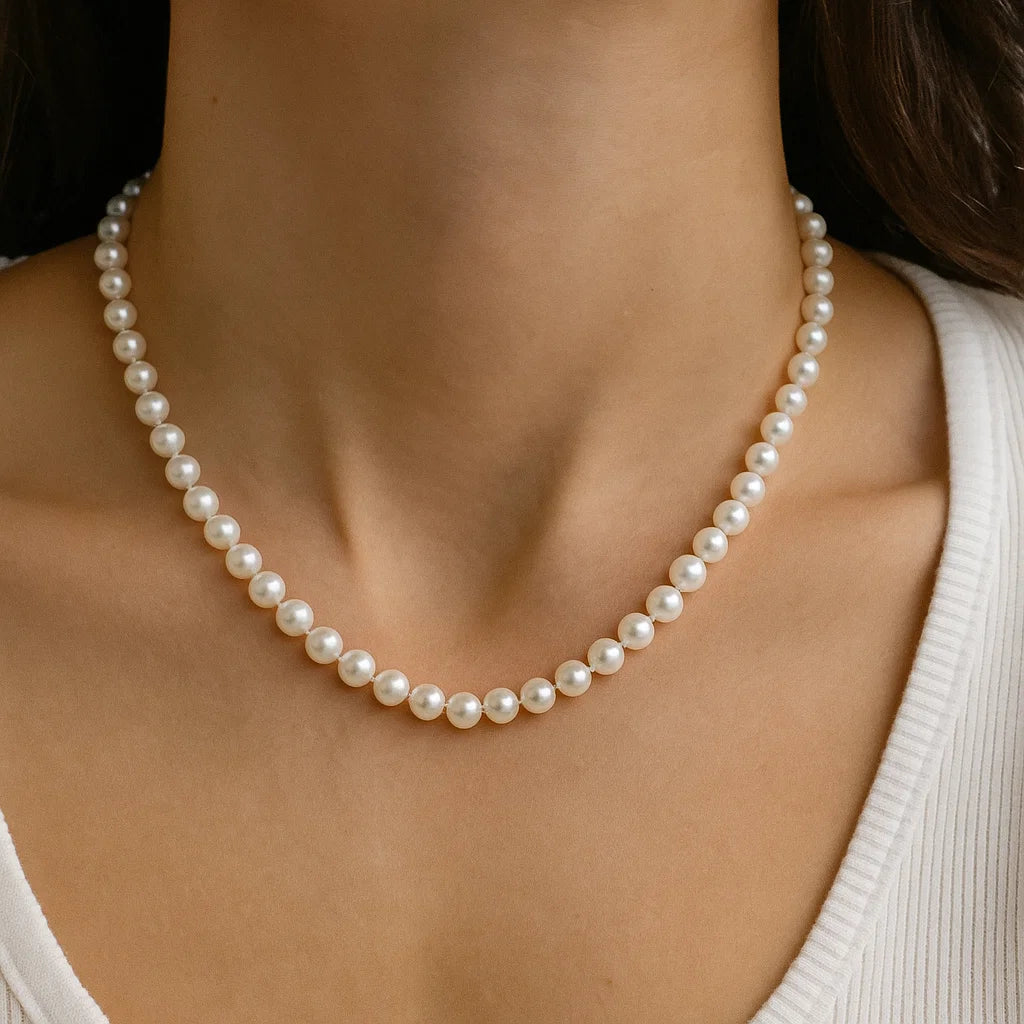A simple yet elegant pearl necklace, featuring Japanese Akoya Pearls.