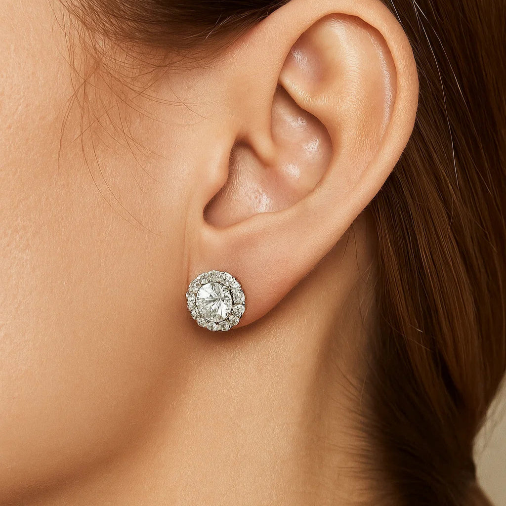 Transform your ordinary stud earring into an extraordinary piece with KIRA! This breathtaking earring boasts a 0.50ct center diamond surrounded by melee diamonds, creating a halo of shimmer and sparkle.