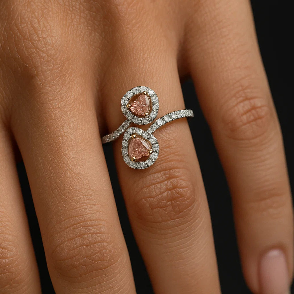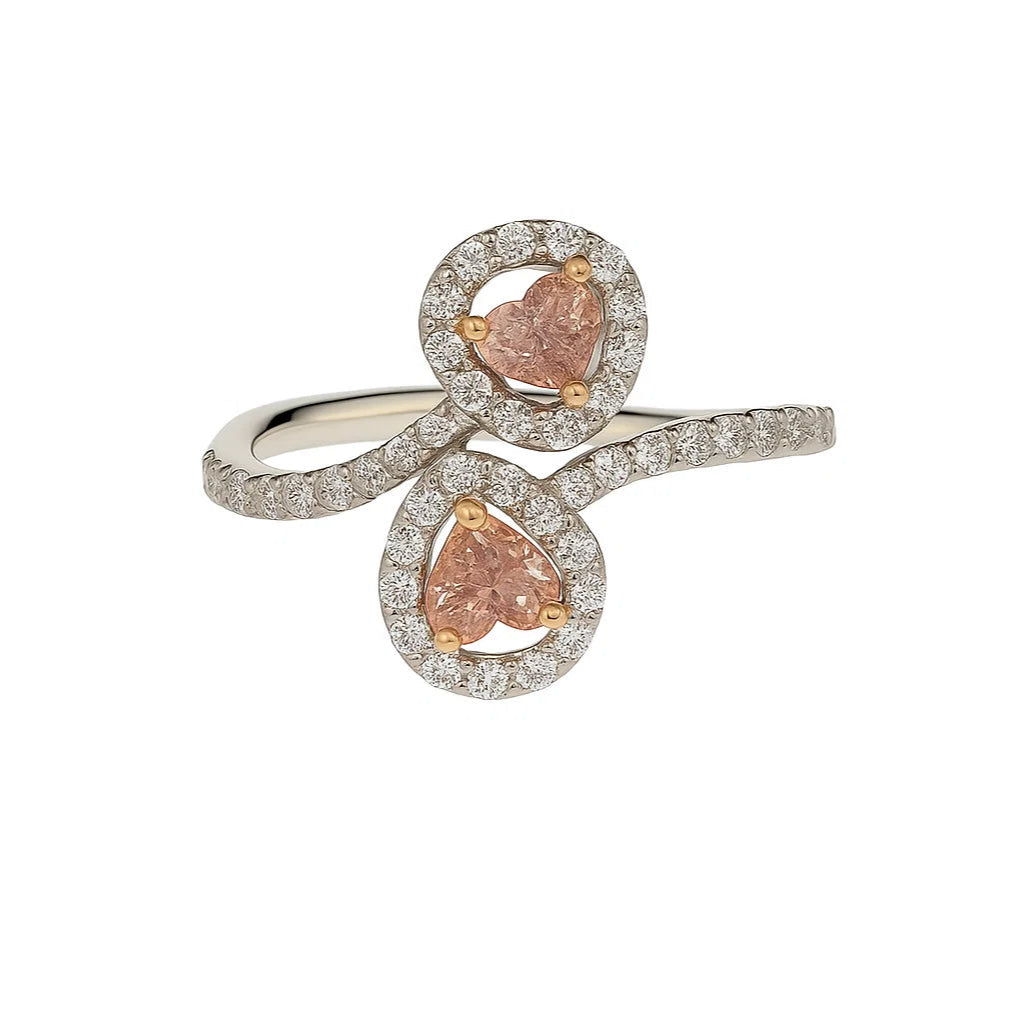 KOHARU showcases 2 unique heart-shaped pink diamonds and is ideal for an engagement ring, special occasion, or showing affection for a loved one.