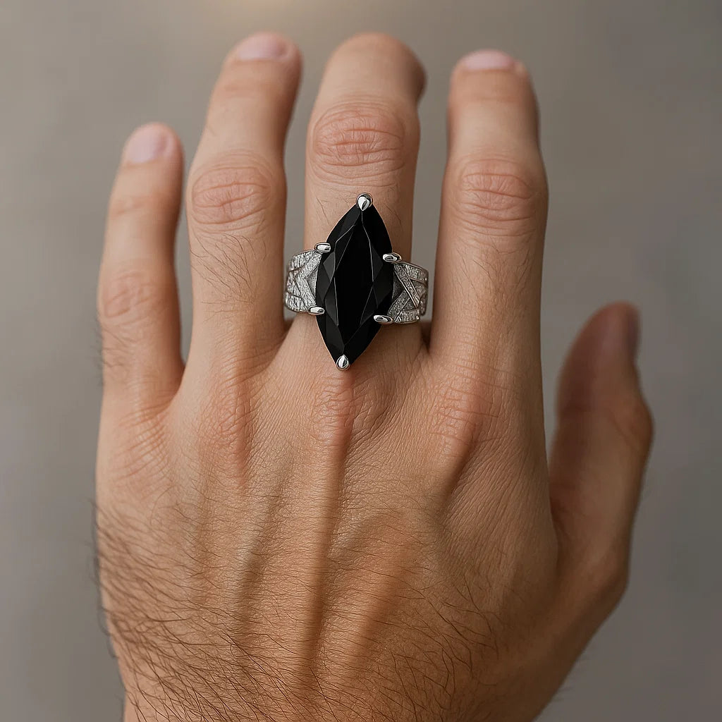 KUROKI combines grunge and elegance, featuring a black diamond center stone and intricate band for a touch of sparkle.