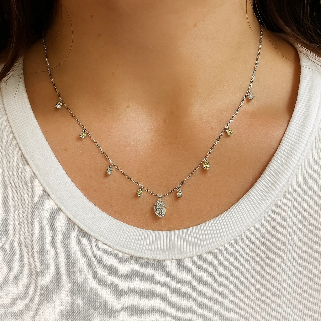 - Surrounding Stones: Pink Marquise and Canary Yellow Diamonds