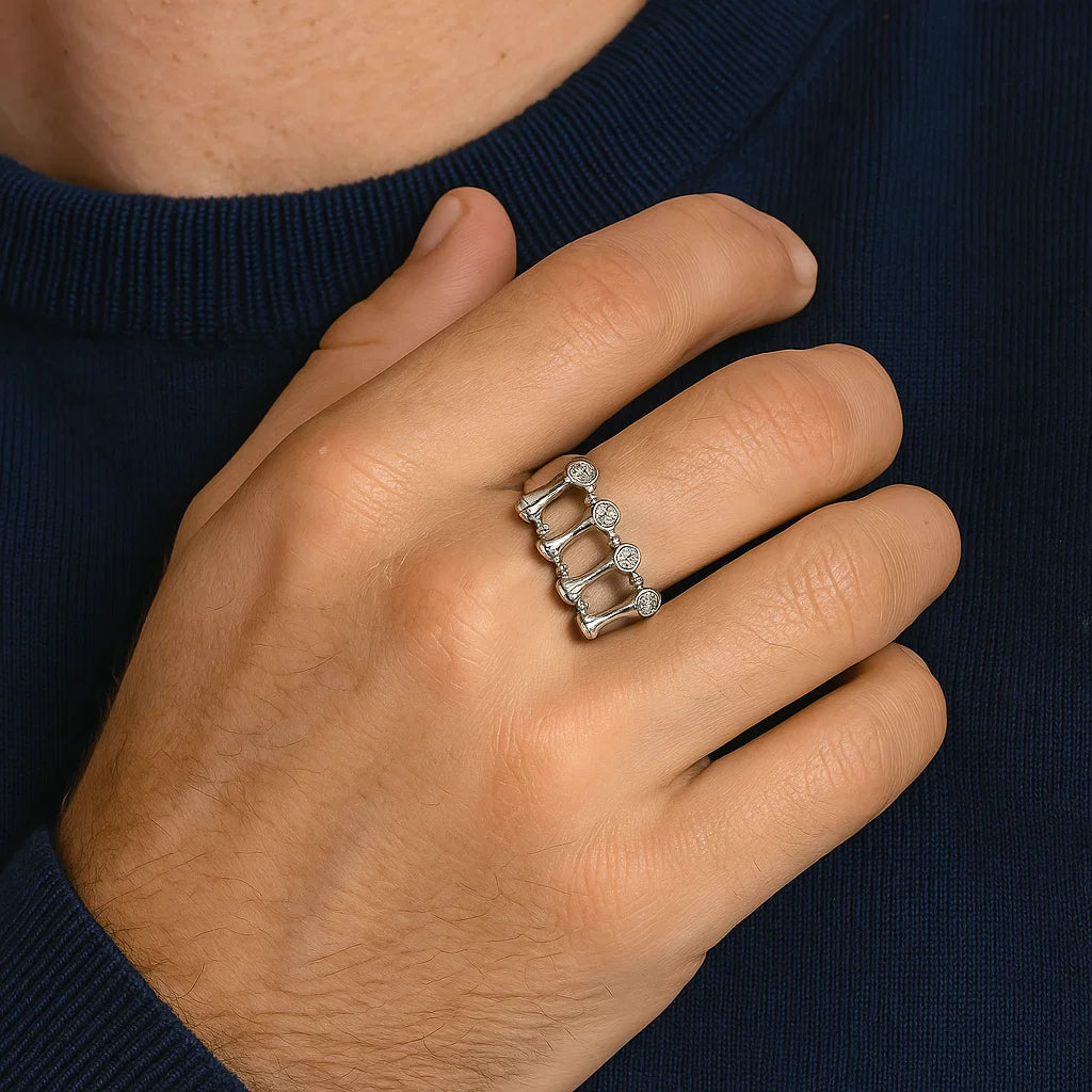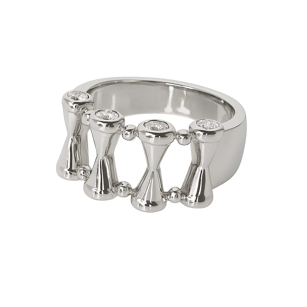 Mimicking the shape of a hourglass, RIKU mixes an affordable metal with precious natural white diamonds, which perfects captures the essence of ARIIS Jewelry.