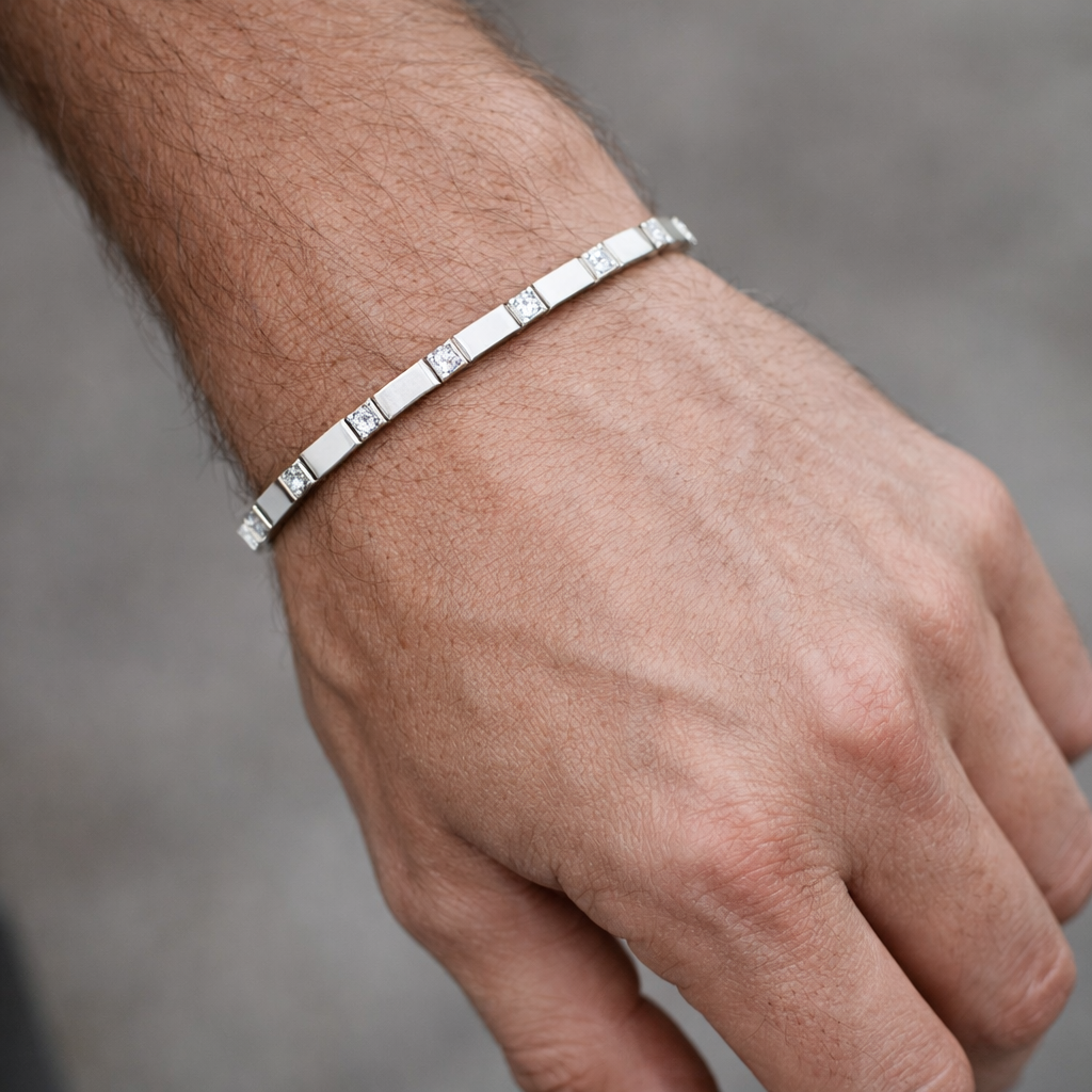 MARI: White diamonds set with an unrefined platinum link, ideal for enhancing your daily collection and coordinating with KADA.